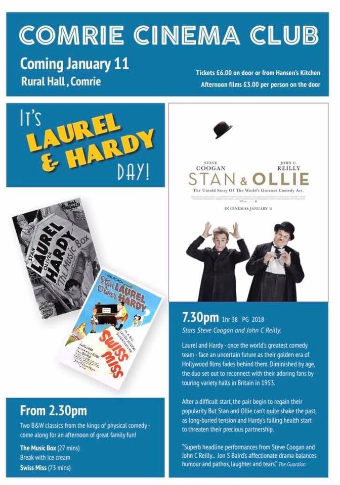The evening showing is at 7.30 with the award winning Stan and Ollie starring Steve Coogan and John C Reilly. Tickets are £6 from Hansen’s and there may be some on the door. BYOB if you like.