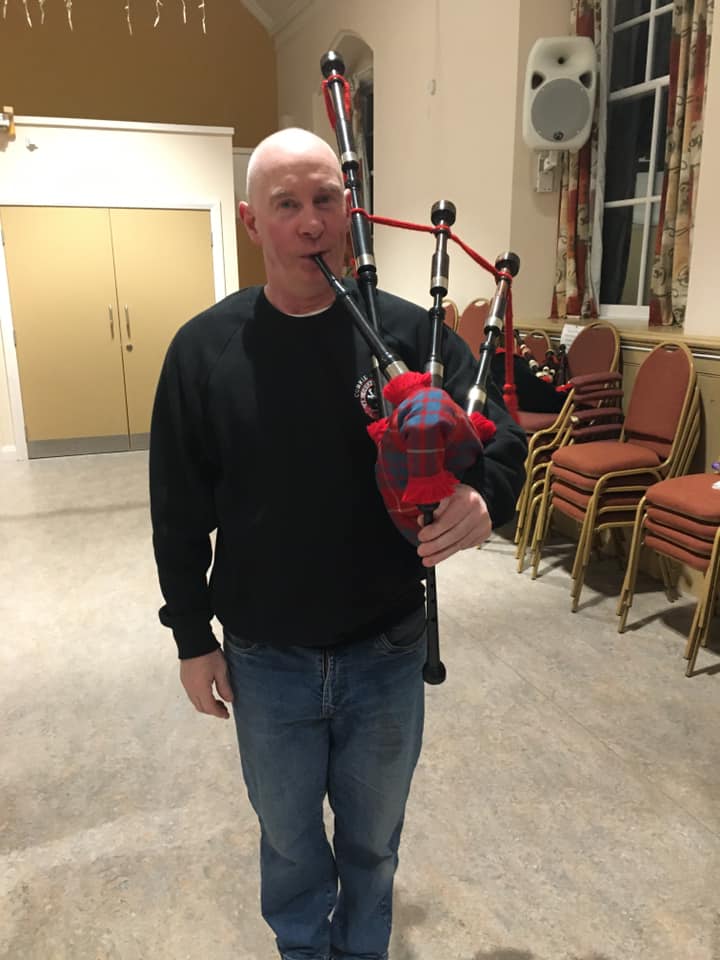 At approx 30 I attended Aberdeen college for a term to pick the chanter up again but as I was away working half the time it didn’t work out. At 50 I decided to find a tutor and was introduced to Ex PM of the Grampian Police and started again. Progressed well and he got me onto the pipes to play a few tunes. Unfortunately he fell terminally very quickly and we lost him in a short space of time. I was devastated for him and his wife and it knocked me an I put the chanter and pipes away.