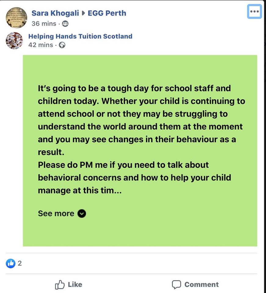 She is very concerned about the wellbeing of children in this time of turmoil….Please do contact her if you need to talk….Take a look at her standalone Facebook page for advice and ideas or contact me to pass on your details freshandvintage.blair@gmail.com